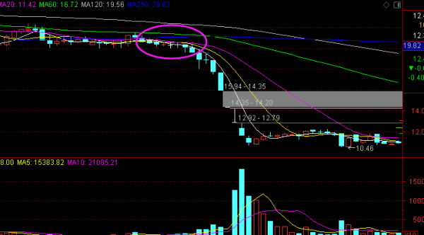 这个时候主要关注的就是股票成交量如何,成交量不大的话,就意味着股价很有可能会短期下降;如果成交量很大,那就完了,估计股价要长期下跌了。