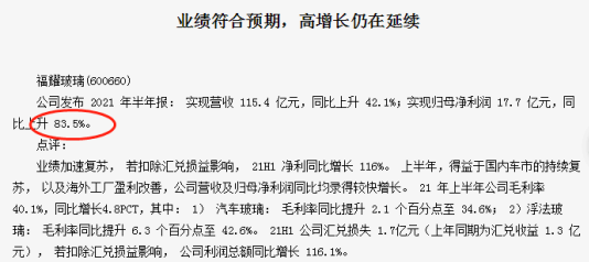 ②PEG:从盘口信息可以看到福耀玻璃的PE为34.75,再根据公司研报获取到净利润收益率83.5%,可以得到PEG=34.5/(83.5%*100)=约0.41