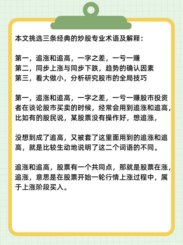 第一,追涨和追高,一字之差,一亏一赚股市投资者在谈论股市买卖的时候,经常会用到追涨和追高,比如有的股民说,某股票没有操作好,想追涨,没想到成了追高,又被套了这里面用到的追涨和追高,就是比较生动地说明了这二个词语的不同。