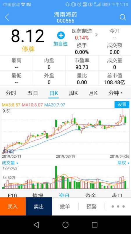 详淡今天股票海南海药走势,和明天走势?赐教。