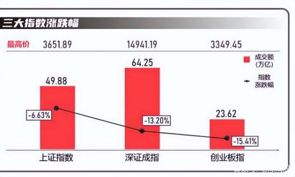 如上图,这是上半年a股三大指数的跌幅数据,其中上证指数上半年跌幅为6.63%,总成交额为48.88万亿元;深证指数跌幅为13.20%,总成交额为64.25万亿元;创业板指数跌幅为15.41%,总成交额为23.62万亿;同比去年总成交额增加了,但三大指数集体下跌为主。