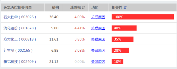 红宝丽:公司主要产品:环氧丙烷;异丙醇胺。