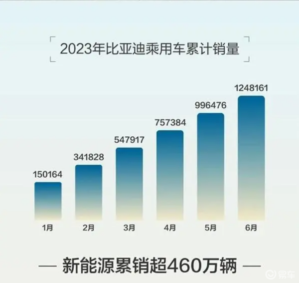 早在7月初,比亚迪披露销量数据显示,公司6月新能源汽车销量合计25.3万辆,其中乘用车销量达25.17万辆,同比增长88.2%,首次突破25万辆大关。据悉,2023年上半年,比亚迪销量合计125.56万辆,同比增长94.25%,增幅接近一倍。