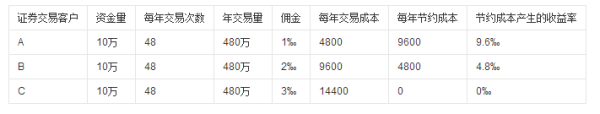 2、假如您资金量为10万元,每月交易20次,佣金为1‰、2‰、3‰等三种费率情况下的交易成本节约一览表: