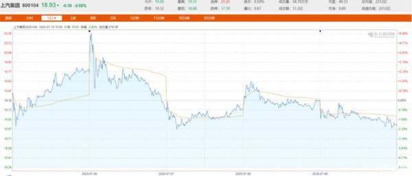 本周五,上汽集团再跌2%,报收于18.93元,这已经是本周连续第三天成下跌态势,与3月份疫情期间的23元相比缩水五分之一。