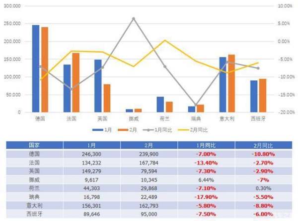 2月份,欧洲新能源汽车保持比较火热的状态,而整个传统车市场处在持续下降的过程中,这个现象真的是值得我们注意。随着疫情对欧洲国家的影响,接下来很多事情也没办法预料,我们先详细对比下2月份的数据再说。
