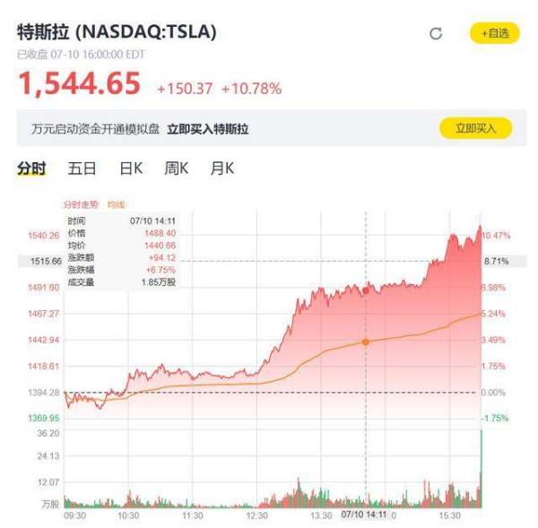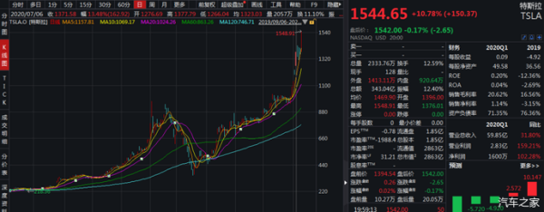这里不得不提一提,美国“茅台”特斯拉。各种聚光灯下,特斯拉股价再次飙升超过10%,收在了超过1544美元每股的价位。