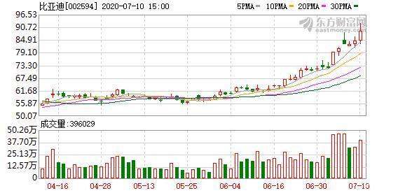 本周五,比亚迪上涨5.38%,报于每股89元,股价再创新高,最新总市值达2252亿元,一举超越上汽集团,成为中国汽车企业“一哥”。另外,在港股上市的比亚迪股份今日涨近3.49%,报77.3港元/股。