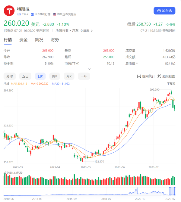 据悉,今年以来,特斯拉的股价区间涨幅已超过130%。近日马斯克在社交媒体推特上表示,特斯拉股价有望冲上每股300美元。截止到周五收盘,特斯拉的股票动态上下起伏颇为激烈。