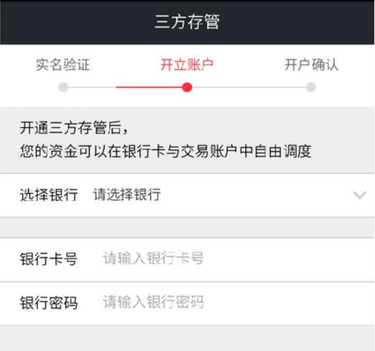 绑定一张第三方存管银行卡,普通借记卡即可,各家证券公司可能会与不同的银行合作,进行资金托管,因此要绑定一家与该券商有三方合作关系的银行卡。传统五大行以及中信,招商,浦发等适用于所有证券公司。