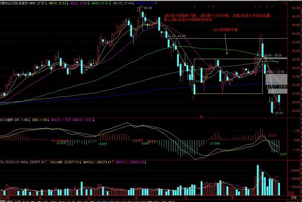 最好把股票的代码或名称说出来,这样好方便回答你。不过由你图上的那个25.55低点和5分图我还是把你这个股找出来了是002038。