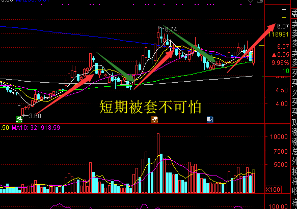 如上图,这只股票前期大幅杀跌,在2015年~2019年呈现下跌趋势,随后在2020年跌到3.60元之后开始止跌,止跌之后明显有机构在低吸筹码。意味着这只股票有新的主力进场,面对这种情况,假如进到波段高位,短暂被套10%了,被套是暂时的,很快又会扭亏为盈的。