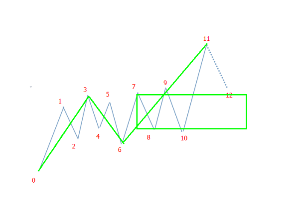 三个5分钟级别走势非常清楚,一定要5分钟级别操作,就是第三个走势,也就是6-11的你所画的A中枢。当然还有一种划分法,就是1-4,4-7,7-10这样的三个走势,来形成扩展成30分钟中枢。你要用5分钟级别操作,那么第一种方法要方便操作,这样11-12就可以看成是否形成A中枢的三买点,其后11-12走出一个5分钟走势后,就可以把3-6,6-11,11-新开成的5分钟走势,这三个组成30分钟中枢,而其后的0-3就是a ,这样整个走势就是a+A 的30分钟盘整,常非好理解操作