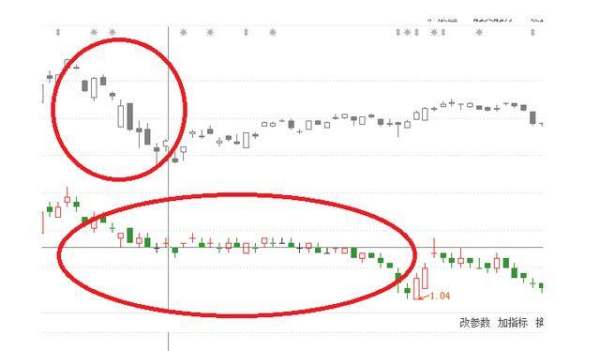 上图案例中灰色会上证指数的走势,当上证指数出现较大的回调后,该股的出现持续性的阴跌的情况,当上证指数下跌后出现反弹后,但该股仍旧是出现阴跌的状态,主要原因是市场出现大跌,该股没有庄家机构在参与,完全是散户在博弈的话,大部分的散户投资者基本上处于被套的情况,也没有原因卖出,看到大盘出现了回调,也只有少部分散户投资者卖出,自然就出现了小幅度阴跌的状态。
