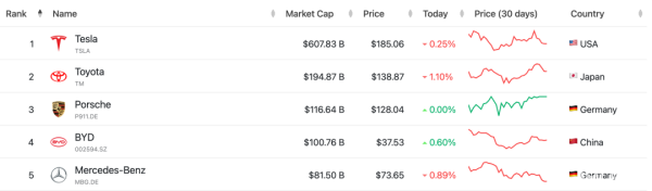 尽管特斯拉保持高速增长态势,但并不及华尔街预期。据了解,特斯拉近一周股价跌幅达10.8%,从207.5美元跌至185.1美元,市值蒸发超万亿元,当前总市值为5855.5亿美元,但仍是全球市值第一车企。