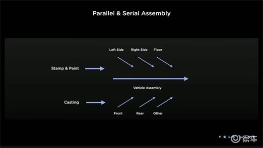 传统的汽车生产、组装方式,需要从切割与冲压开始,到白车身焊接、油漆,以及最后的组装,是一条线性的过程。但一条线上的延迟,会卡死整个生产流程。拉尔斯认为,这样做的效率过低,因为任何一个环节被卡死即意味着整个产线的停止。所以,这是需要改进的地方。而特斯拉的下一代技术将会对此进行颠覆。