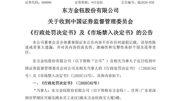 东方金钰目前已经遭到2次行政处罚,尚有第3起涉嫌信息披露违法违规案件正在调查。
