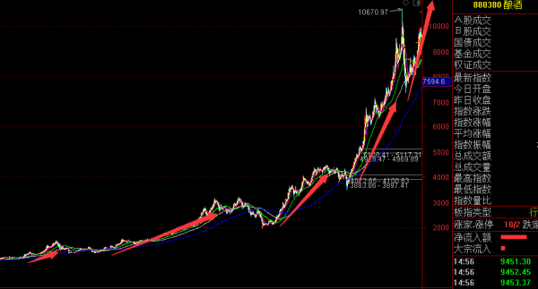 根据这些牛股来看,A股过去六年时间里面,股票涨得最好的就是白酒板块,白酒板块又以贵州茅台股价涨到市值全市第一,股价全市第一;白酒已经成为A股核心资产,其他科技已经严重拖后腿了指数科技已经被白酒甩到几百条街了,只要有白酒涨就好了,其余行业个股涨不涨都是无所谓。