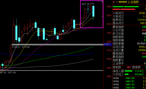 7月初大盘突破3000点后,整个A股活起来了,场外资金大幅入市炒股,连续10几交易日成交量破万亿。