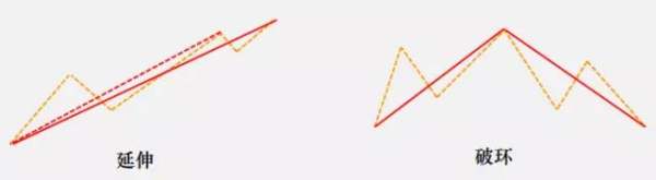 线段产生以后,若不在相反方向产生新线段,那么这个线段在同方向上继续延伸,否则称为线段被线段破环。