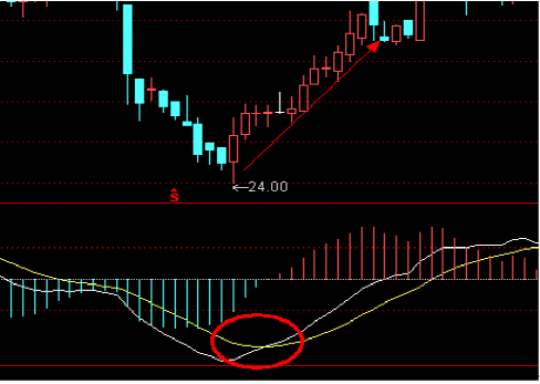 这是MACD最常见的形式。众所周知,如果白线在黄线的底部,则是金叉,而在另一端,则是死叉。股票分叉说明股价上涨了,短线买盘力量已经超过了长线买盘力量,所以此时进场,长线获利机会更大。