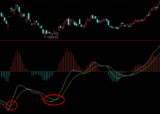这个很好理解。如果白线在黄线下面,那么DIF会比埃达下落得更快。也就是说,短期内买盘力量仍然较弱,卖盘力量很大,反之亦然。如果黄白线在零轴以下,说明短期市场价格没有超过长期市场价格,所以不会是强势市场。