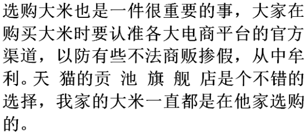 稻花香大米基本粒粒带腹白,腹白多是稻花香非常明显的一个特征。如果腹白少,很可能非稻花香大米。造假者用腹白多的其他大米掺杂,也很好辨认,因为除了稻花香这个特有品种之外,大米腹白多说明其成熟度不够,用手搓米很容易碎。