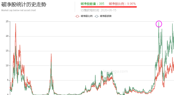 截止昨日收盘,A股市场破净股总数量达到385只,破净股的比例是9.96%,意味着在A股市场里面100只股票就有10只是破净的;说明了咱们A股已经严重超跌了,说明了现在的A股已经处于底部了。