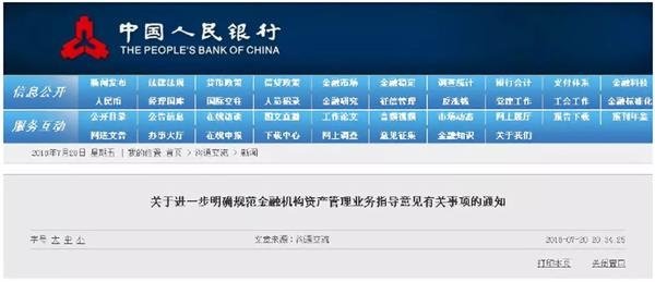 而7月20日晚间传闻获得了证实,首先是央行发布《进一步明确规范金融机构资产管理业务指导意见的通知》(简称“资管新规”细则)。