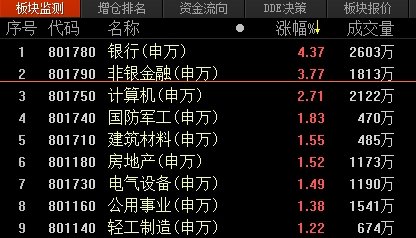 值得注意的是,权重金融股成为此次引领大反弹的主角。申万一级银行板块指数收涨超4%;非银金融板块指数同样收涨超3%。