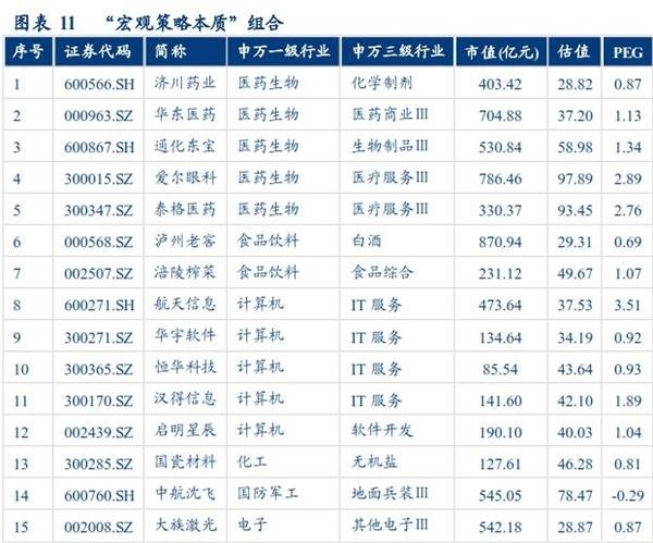 基于以上五点特征,我们自上而下构建了“宏观策略本质”组合。从行业分布上,医药生物和计算机是我们非常看好的行业方向;此外,食品饮料、国防军工、电子、化工也是较为推荐的方面。