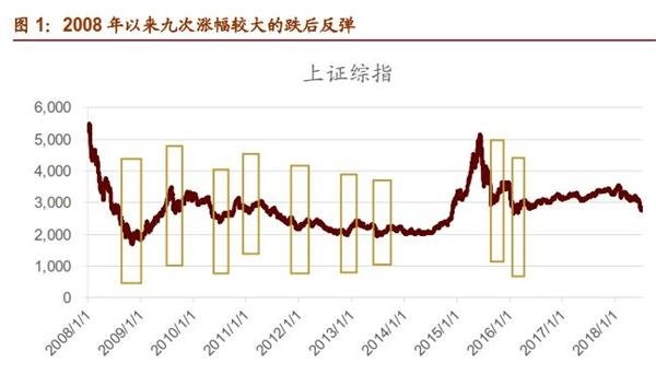 直观上看,反弹的时间区间在 1-2 个月左右,指数反弹的幅度跨度为 12%-25%,平均反弹幅度为 18%。而这九次大跌原因不一,而反弹的直接原因总结来看主要有两方面,一个是政策出台消除市场恐慌情绪,另一个是宏观经济基本面向好推动市场上涨。