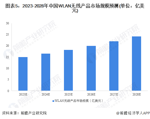 7产品将逐步替代WiFi6,成为主流产品。整体来看,我国WLAN无线产品市场仍具有较大提升空间,预计未来几年市场规模仍将保持平稳增长,到2028年,我国WLAN无线产品市场规模将超过24亿美元。