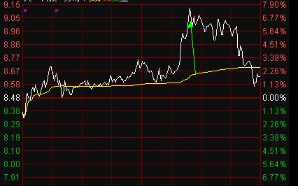 2、分时均价线(黄色曲线)表示该种股票的平均价格。它是从当日开盘到现在平均交易价格画成的曲线,其作用类似移动平均线。