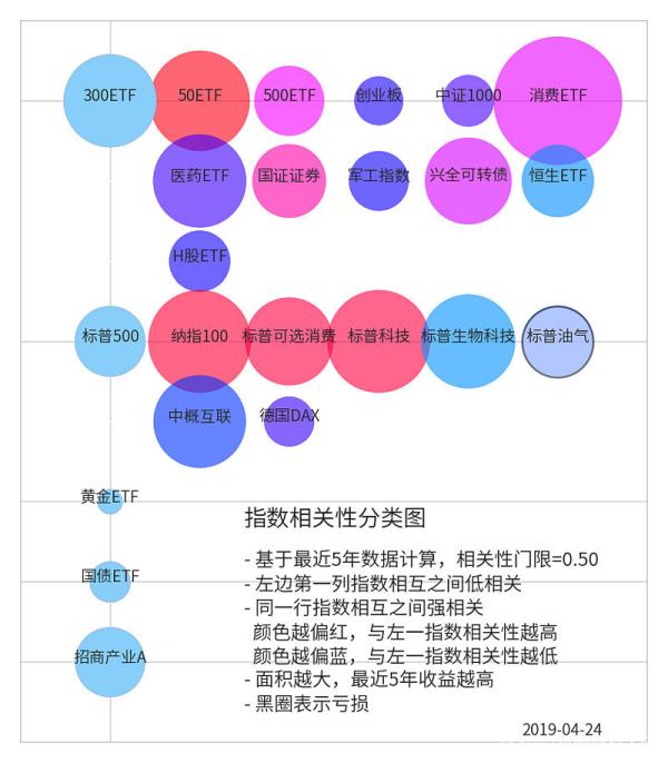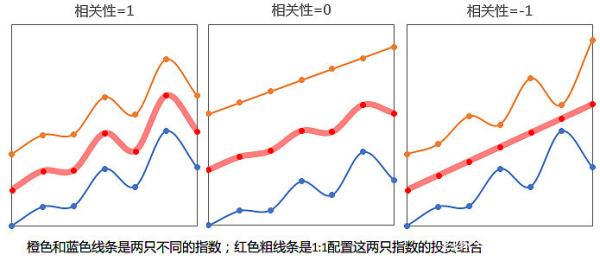 在指数基金第一季中提到的“核心+卫星”,是投资组合最经典的方法之一。我们组合搭配的大原则,是降低组合的波动性,所以选择相关性比较低的标的才能使得组合发挥其应有的作用。
