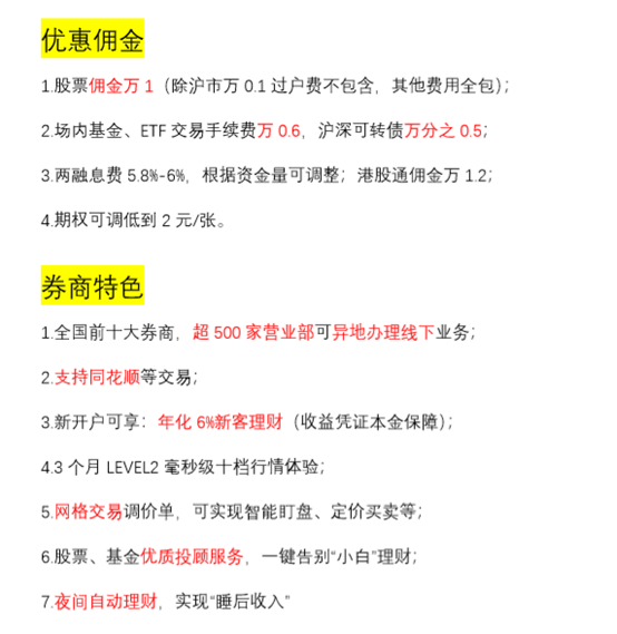 3.两融息费5.8%-6%,根据资金量可调整;港股通佣金万1.2;