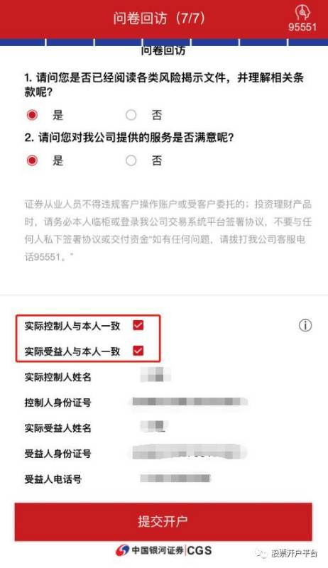 开户申请提交完成后,请耐心等待,开户完成后,您将收到银河证券为您发的一条关于账户信息的短信,并且随后您的客户经理将跟您联系。