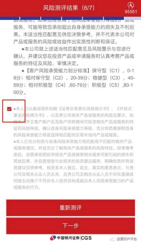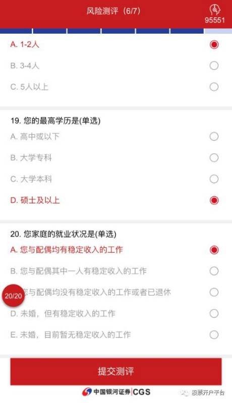 Step10:根据实际情况填写风险测评问卷