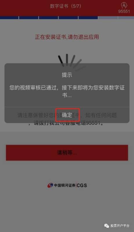 Step9:数字证书自动安装,点击“继续开户”