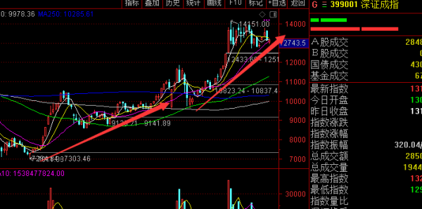截止当前深证指数依旧还是在1.3万点,最高涨到1.41万点,今年总体涨幅以30%左右,走牛趋势很明显。