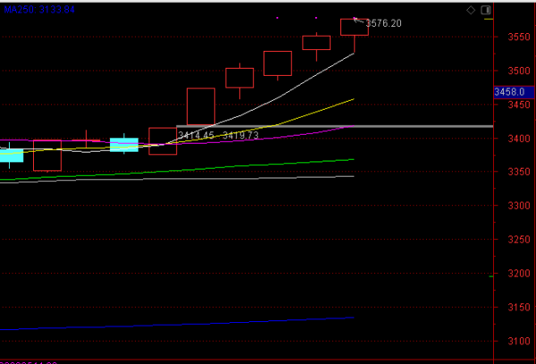 大盘指数自从元旦前最后一个交易突破3465点之后,大盘延续节前的强势继续上涨创新高,连续五个交易日创新高,大盘要突破高点是志在必得的气势。