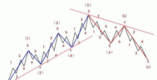 1.波浪理论的基本运行规律:5浪上涨---1浪上涨,2浪下跌,3浪上涨,4浪下跌,5浪上涨,3浪下跌--A浪下跌,B浪上涨,C浪下跌(见下图)