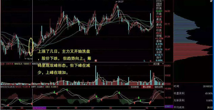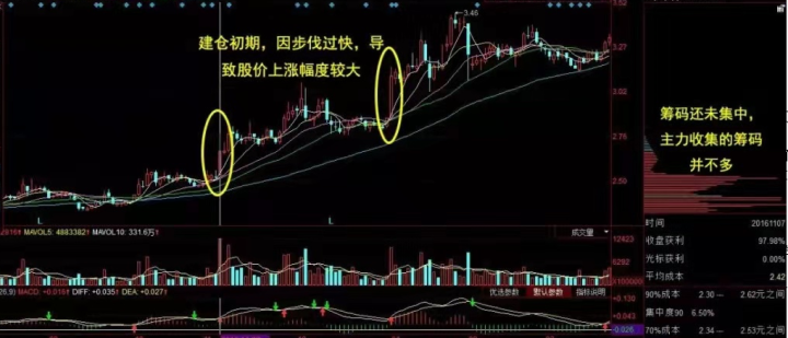 主力,其实就是指在证券市场上单独或联合买进一只或多只股票筹码,在法律允许的情况下,通过市场经营而让本来的资金效益更大化的个人或者机构。简单点说,可以解释为拥有相对于流通盘较大的资金或股票筹码,主力的范围很广,一般指在短期内能引导市场或股价的运行的资本力量。就其特点来说,在资金、信息、技术等方面主力所具有的优势是普通散户投资者无法企及的。主力的行为有“吸货”、“洗盘”、“拉升”、“出货”等,同时主力行为又极具隐蔽性,不过我们也是可以根据K线和筹码分布图分析出细小的问题: