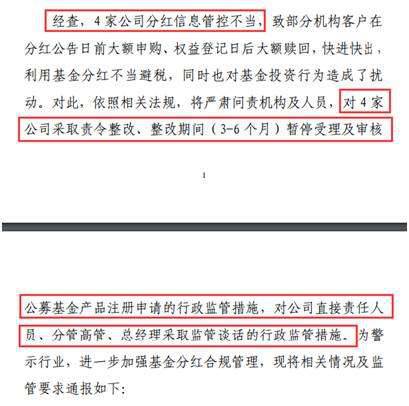 经查,4家公司分红信息管控不当,致部分机构客户在分红公告日前大额申购、权益登记日后大额赎回,快进快出,利用基金分红不当避税,同时也对基金投资行为造成了扰动。