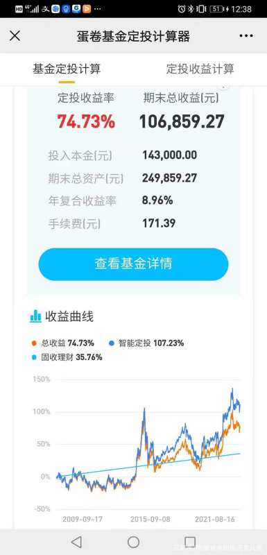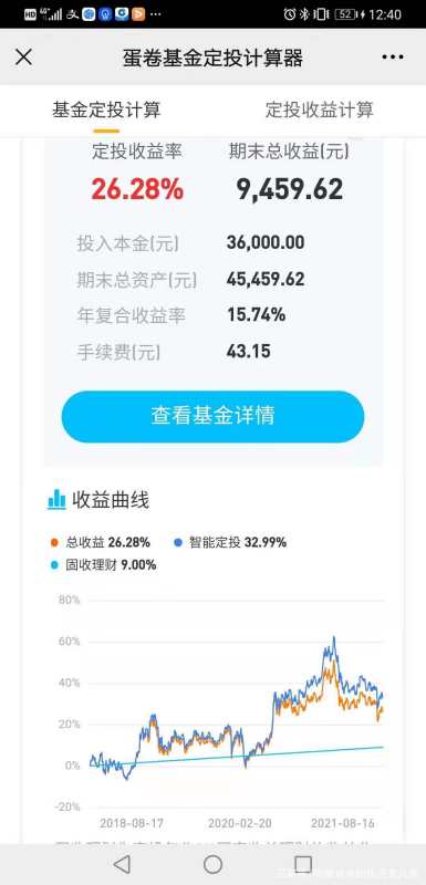 2018年8月至今,连续3年每月定投相同金额,年复合收益率15.74%。
