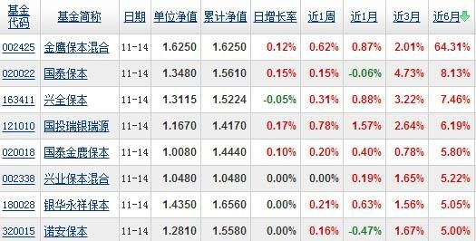近6个月基金保本预期年化预期收益排名: