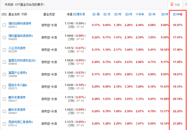 3、收益率(看累计3年收益),将近3年的收益率按从高到低排序,然后选择前十家分析就可以;