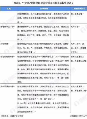 根据《中华人民共和国国民经济和社会发展第十四个五年规划和2035年远景目标纲要》及其它区域建设规划,前瞻认为在以下区域将有明朗的建筑业投资前景: