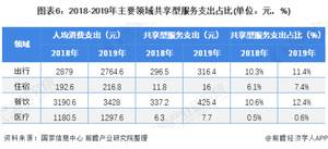 从人均支出消费情况来看,餐饮和出行占比相对较高;从主要领域共享型服务支出占比来看,2019年在线外卖人均消费支出为425.4元,在人均餐饮消费支出中占比最高,达到12.4%;其次是网约车,人均消费支出约316.4元,占人均出行消费支出的11.4%。