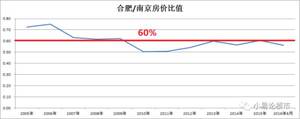 我们知道人口都是向资源型政策型城市集中的,资源越多越优质,人口集中度越高,那么你的房价就会被抬得越高。我在之前的文章中分析过(公号“合肥房价上涨紧盯着哪个城市?》),近十年来,上海、南京合肥3个城市的房价比例,基本维持在10:5:3。也就是说,合肥的房价一直是南京的60%,南京一直是上海的50%。